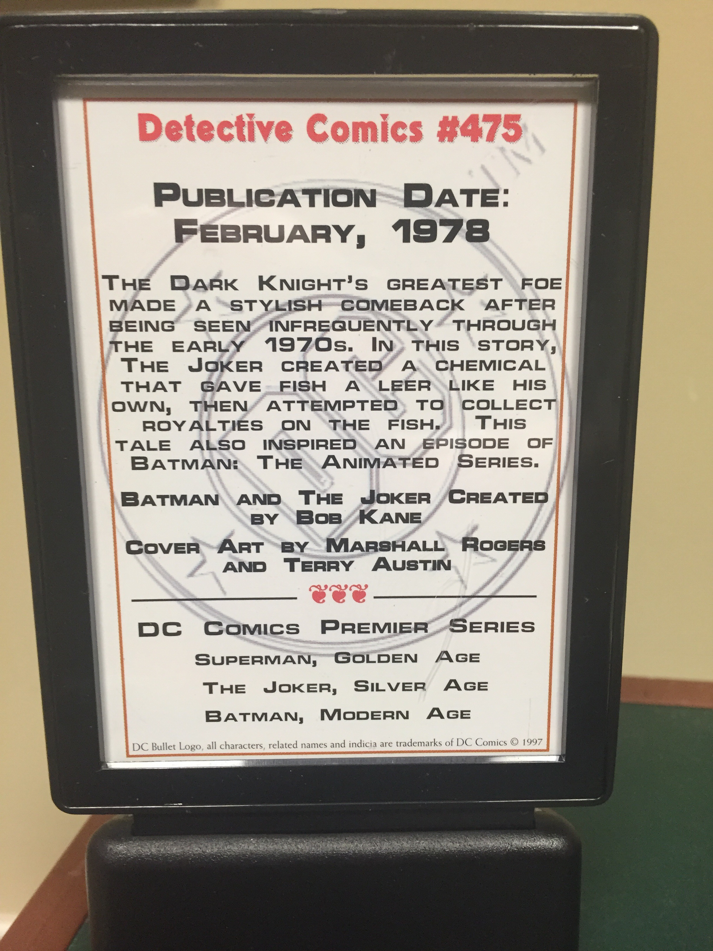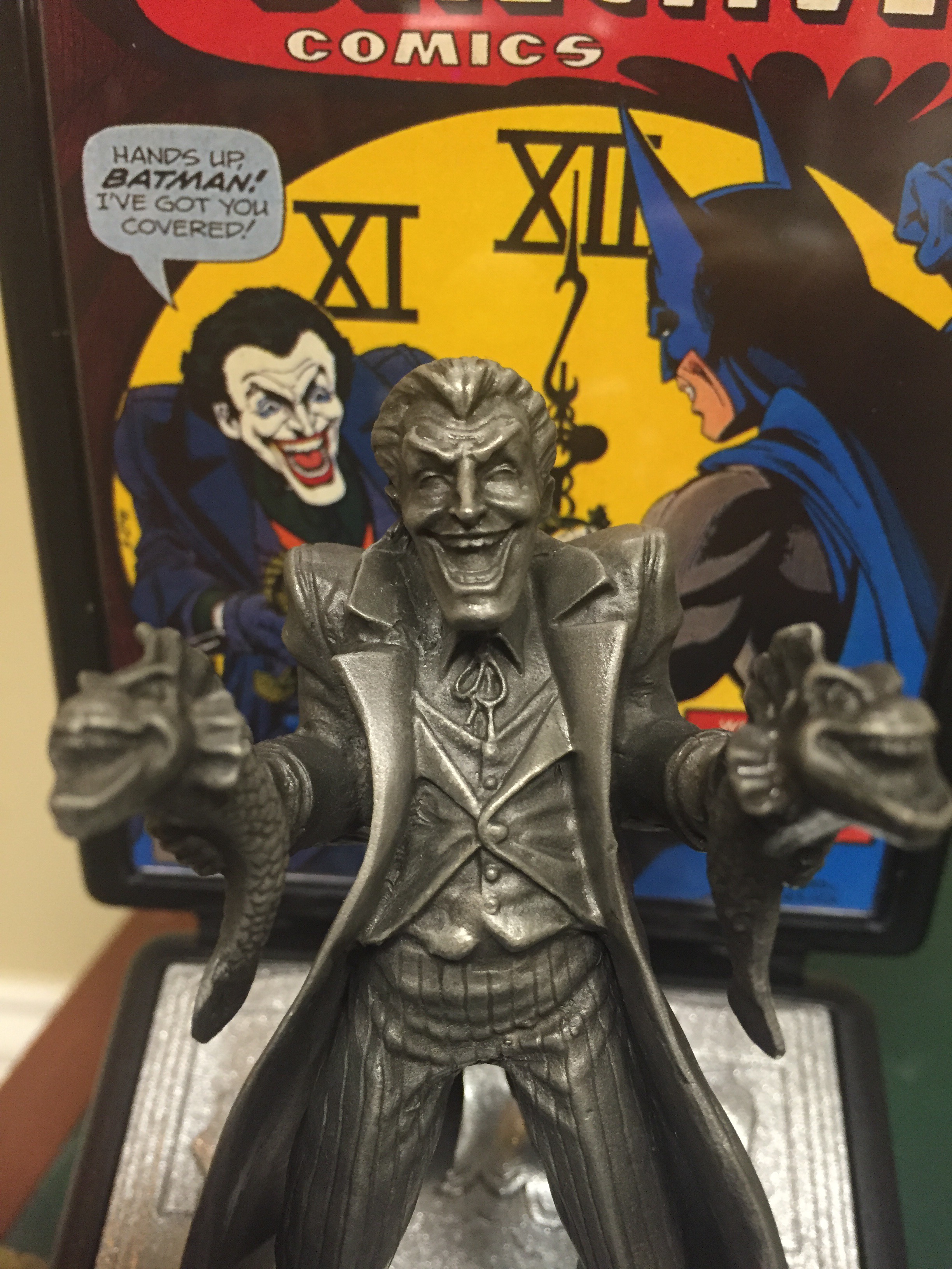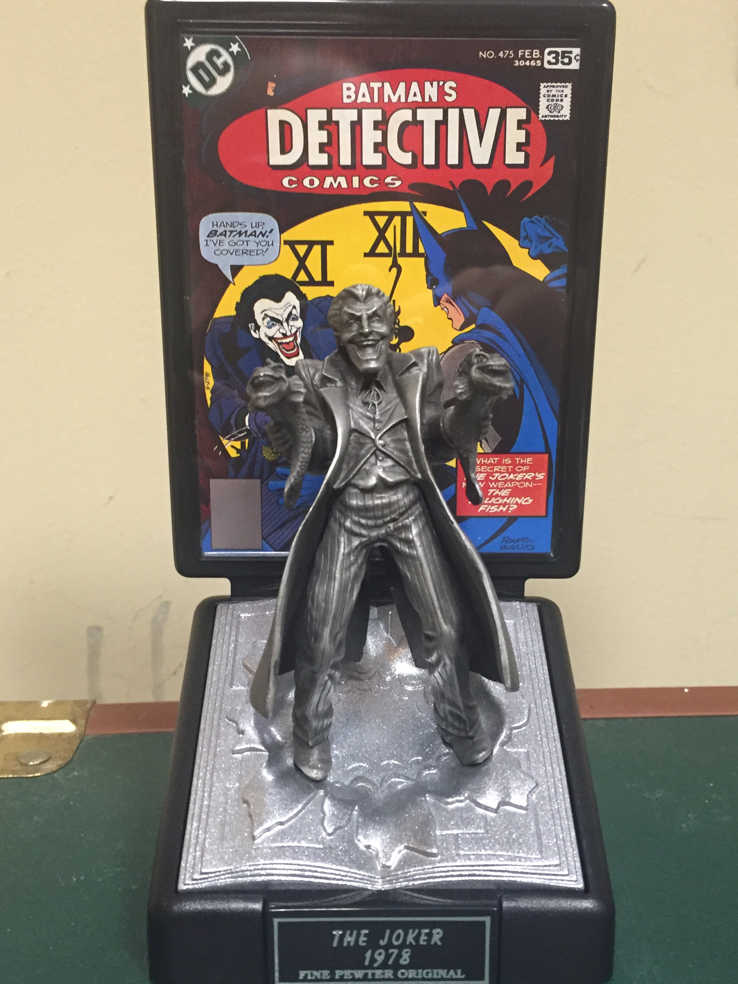 Detective Comics # 475 has one of my favorite Joker Stories. Laughing Fish! This mini statue does a great job depicting the cover in detail.